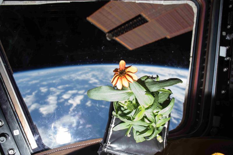 A picture of a flower abord the International Space Station